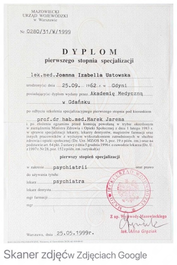 Jestem lekarzem psychiatrą z wieloletnim doświadczeniem.